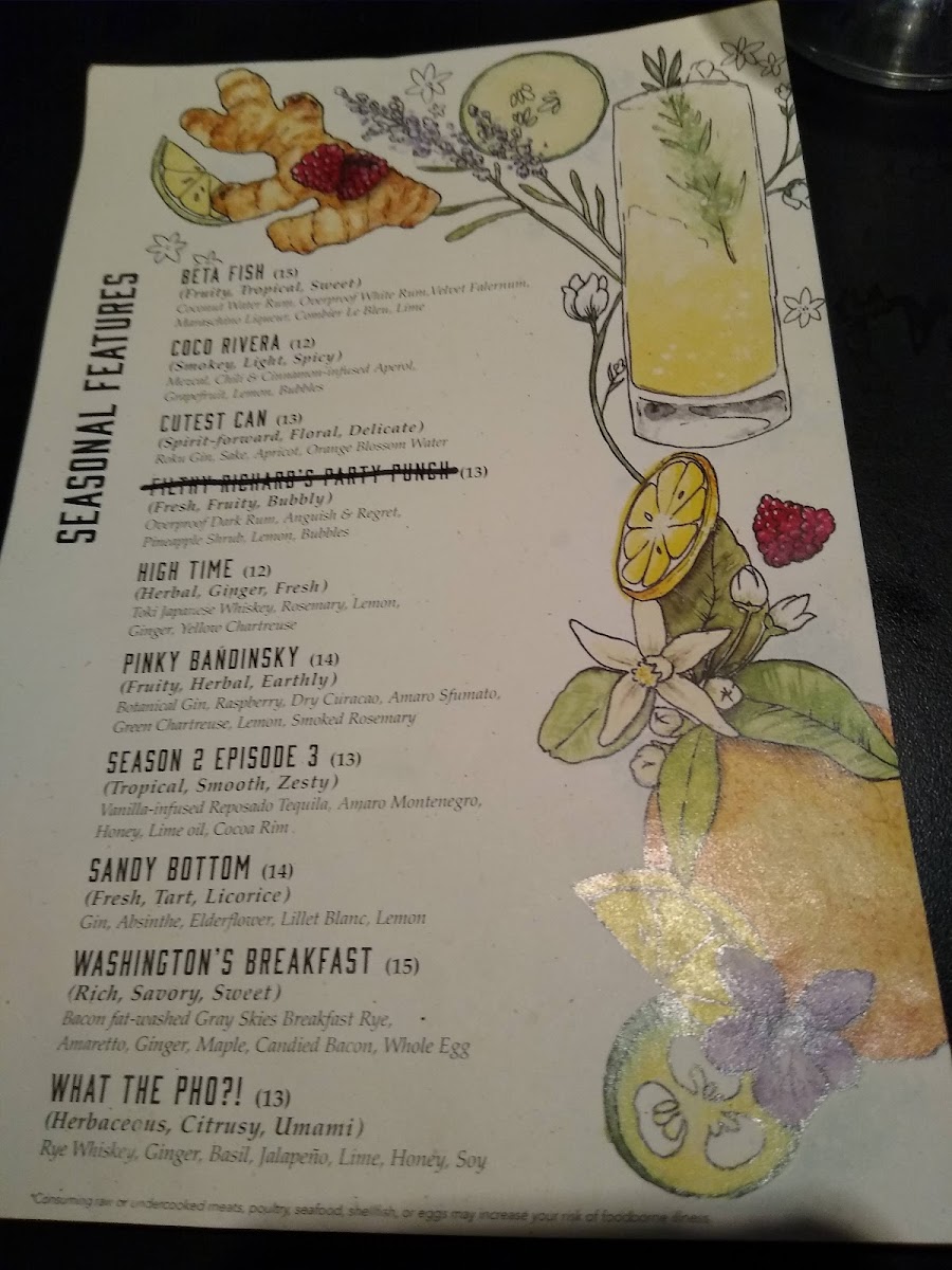 For those seeking something special, the seasonal features offer delightful surprises, like the refreshing Washington's Breakfast and the intriguing What The Pho. Pair your drink with a selection of premium brandies, from the luxurious Martell Cordon Bleu to the artisanal Saint George Pear Brandy.